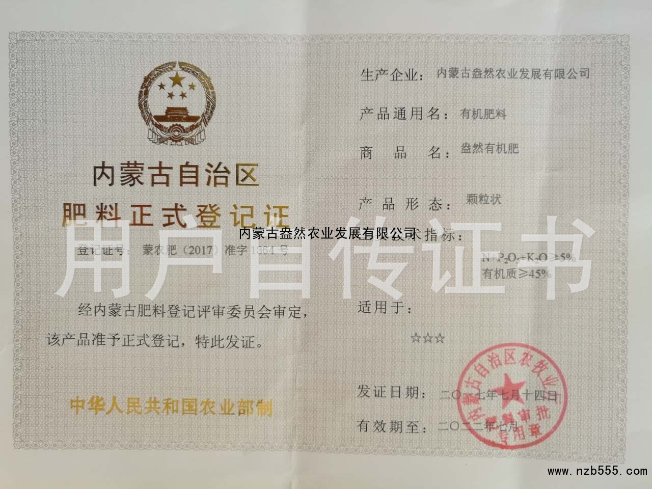 | 發(fā)證機(jī)構(gòu): | 內(nèi)蒙古自治區(qū)農(nóng)牧業(yè)廳 | 發(fā)證時(shí)間 : | 2017-07-14 |