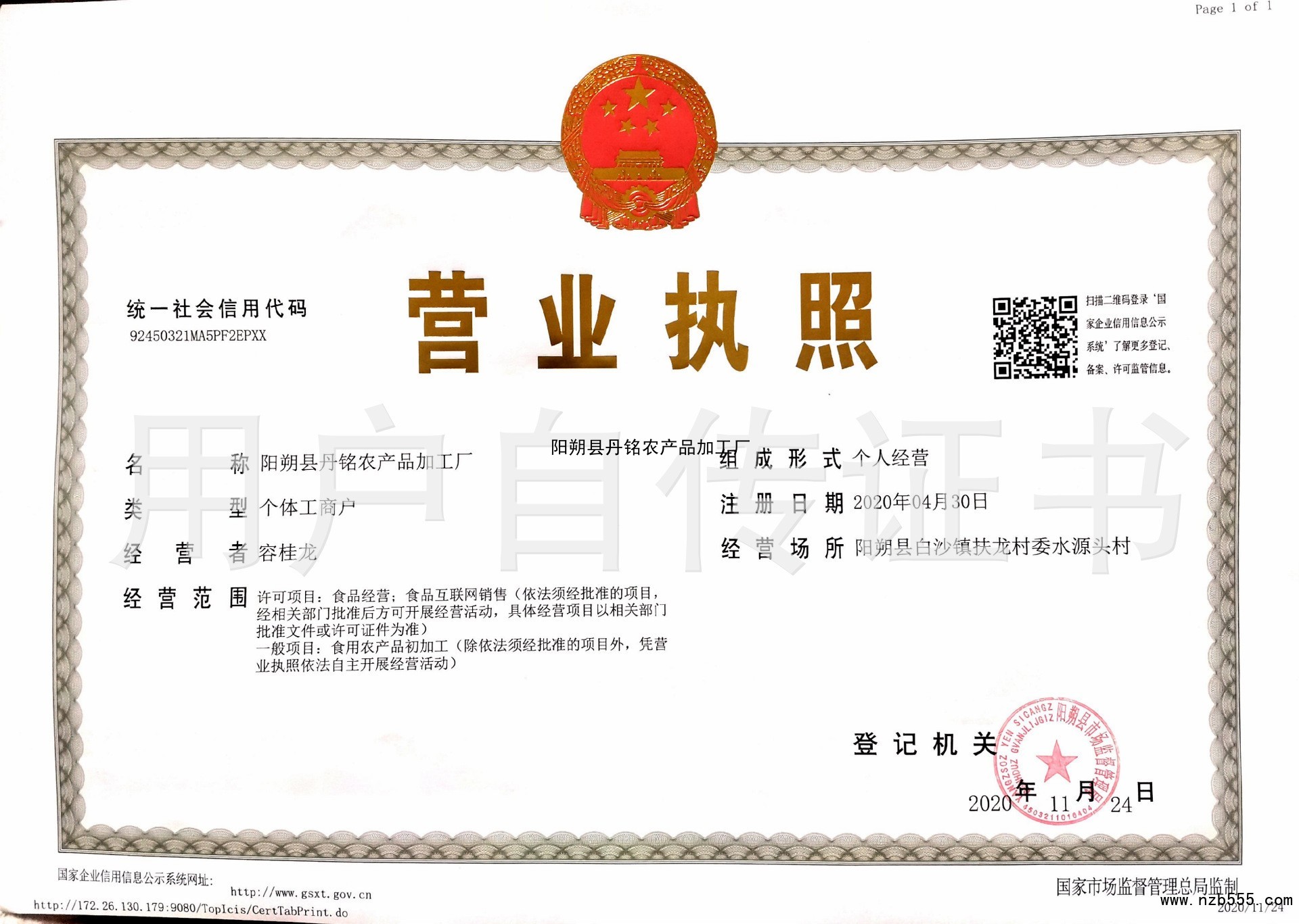 | 發(fā)證機(jī)構(gòu): | 陽朔縣市場監(jiān)督管理局 | 發(fā)證時間 : | 2020-11-24 |