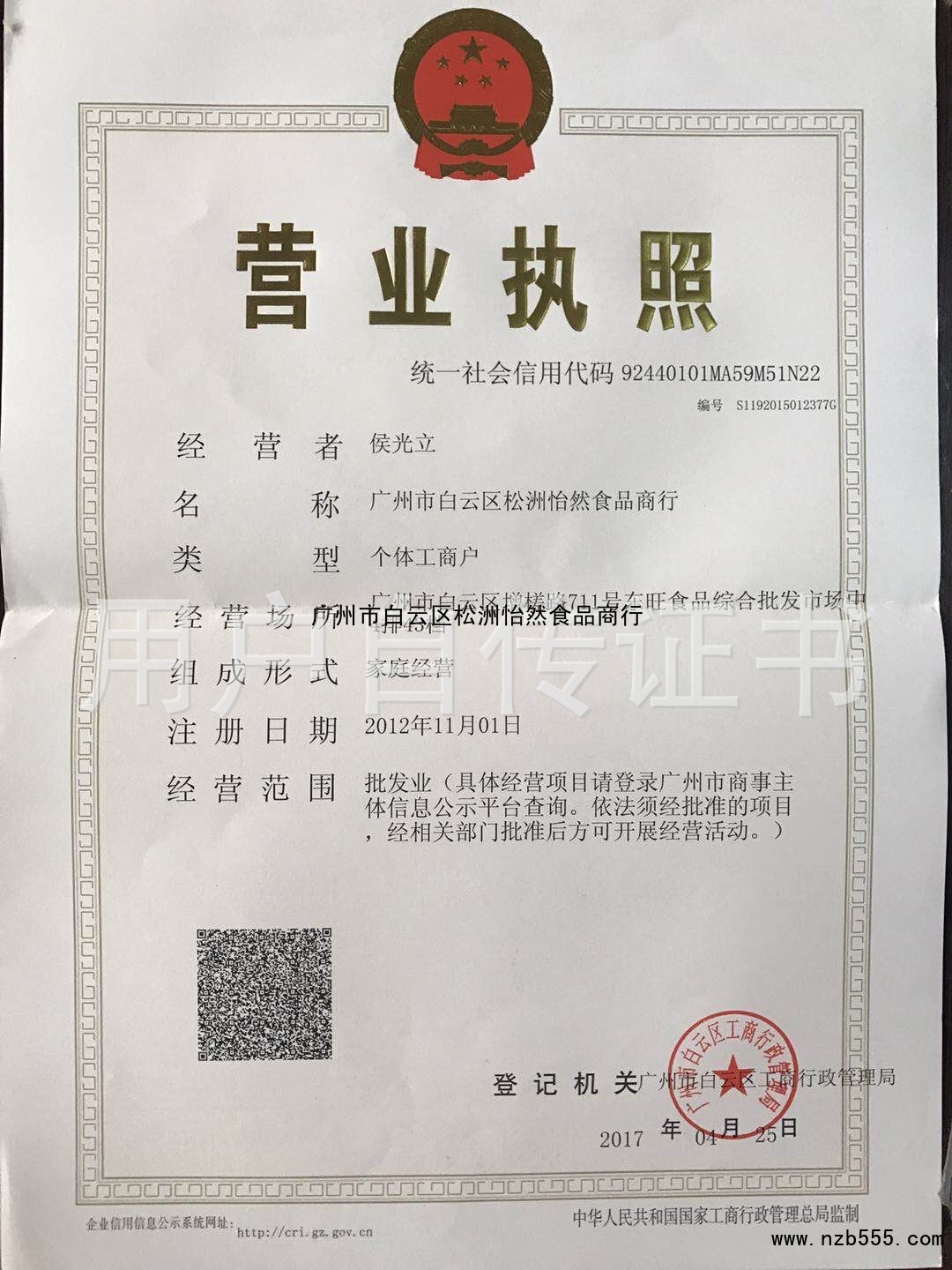 | 發(fā)證機(jī)構(gòu): | 廣州市白云區(qū)工商行政管理局 | 發(fā)證時(shí)間 : | 2017-04-25 |
