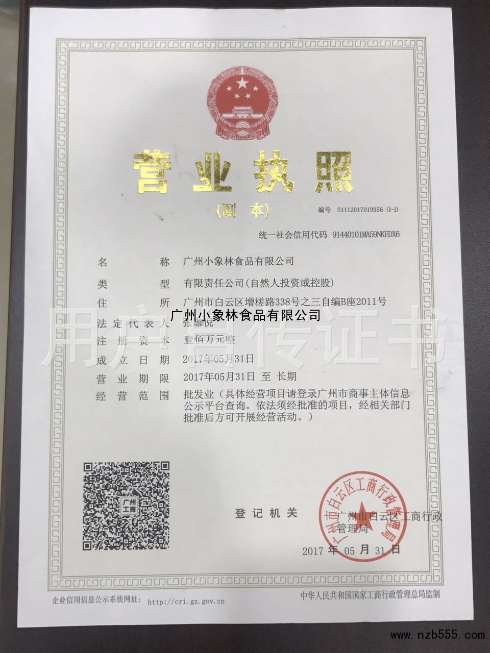 | 發(fā)證機(jī)構(gòu): | 廣州市白云區(qū)工商行政管理局 | 發(fā)證時(shí)間 : | 2017-05-31 |