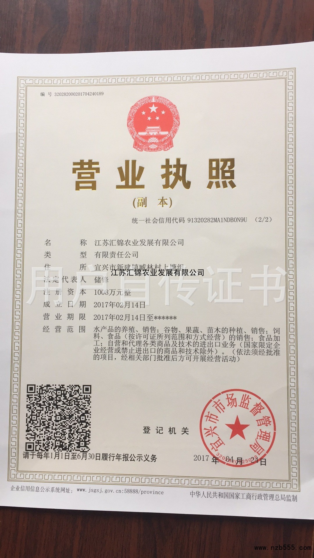 江蘇匯錦農業發展有限公司