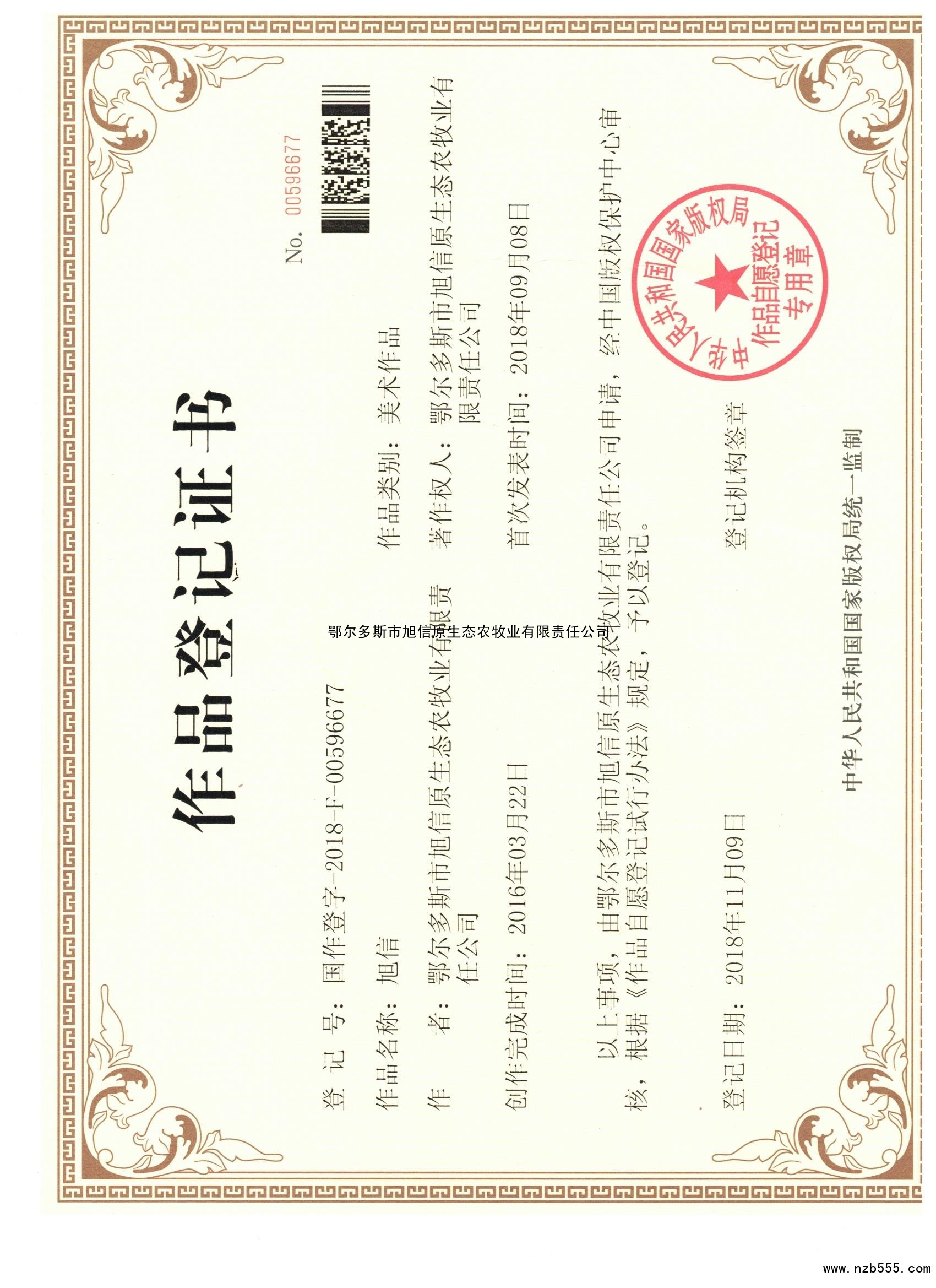 榮譽(yù)資質(zhì) 作品登記證書 旭信