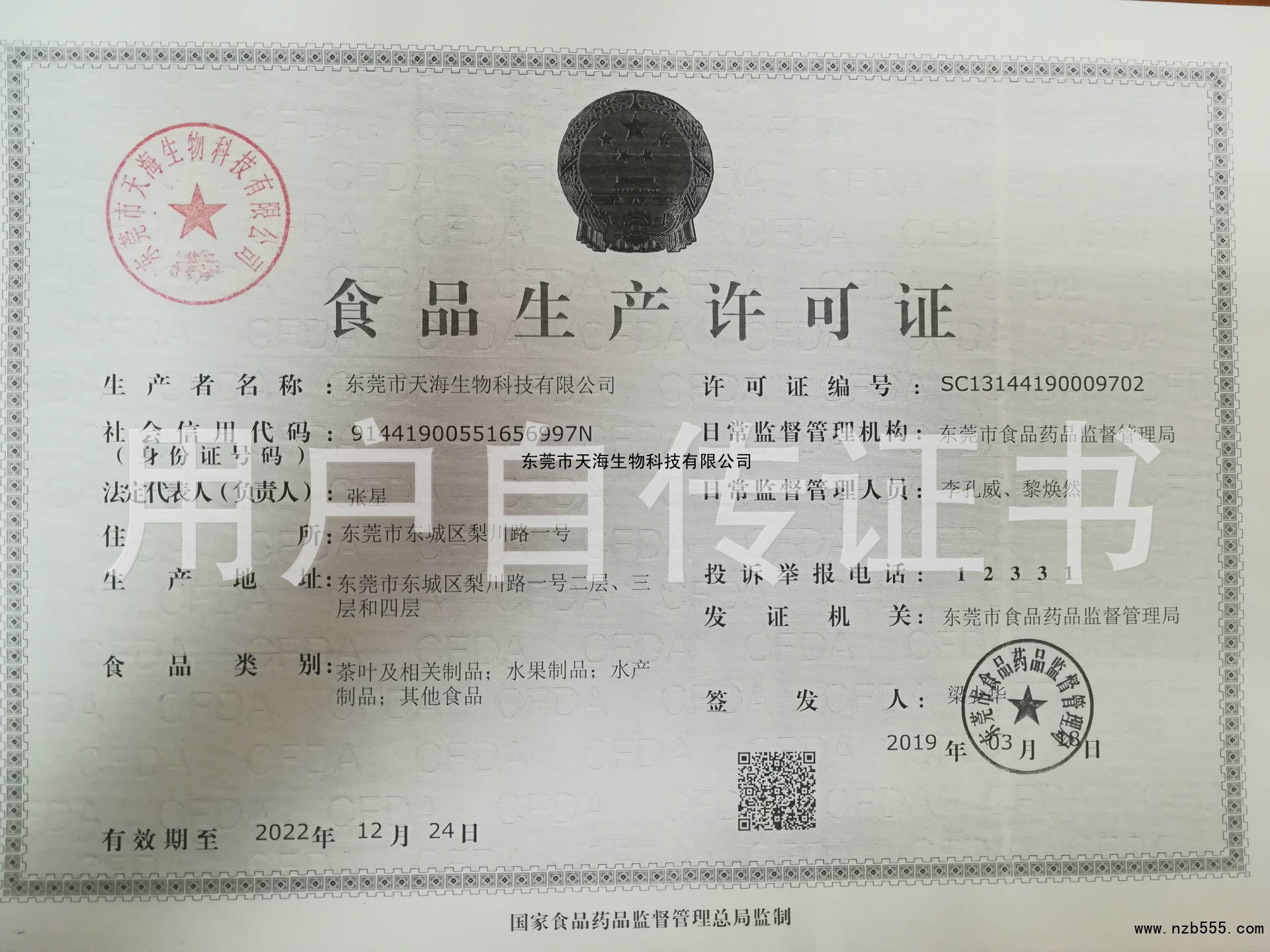 食品生產許可證(除乳制品、嬰幼兒配方乳粉、酒之外的生產許可證)