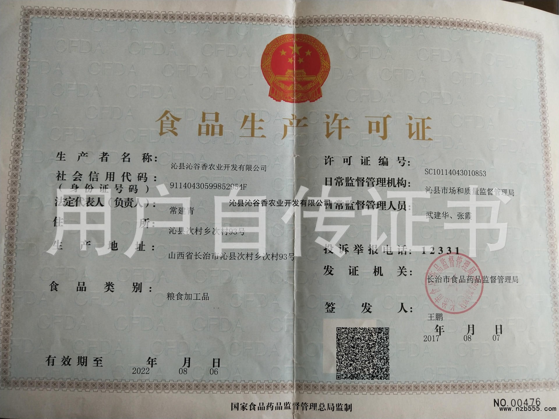 食品生產許可證(除乳制品、嬰幼兒配方乳粉、酒之外的生產許可證)