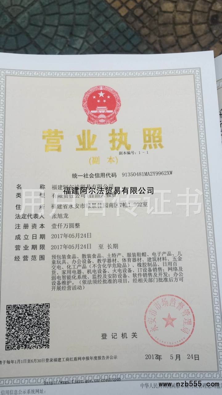 榮譽(yù)資質(zhì) 福建阿爾法貿(mào)易有限公司