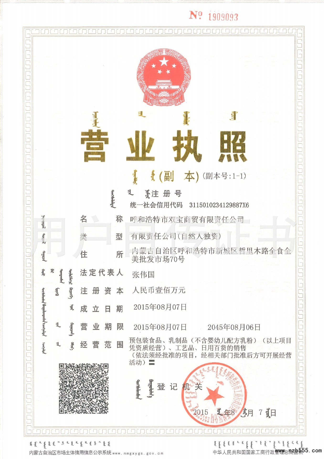 呼和浩特市雙寶商貿(mào)有限責任公司