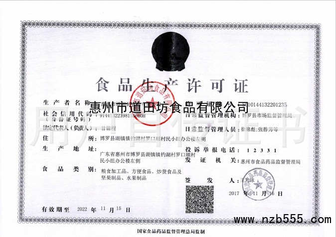 | 發(fā)證機(jī)構(gòu): | 惠州市食品藥品監(jiān)督管理局 | 發(fā)證時(shí)間 : | 2017-11-16 |