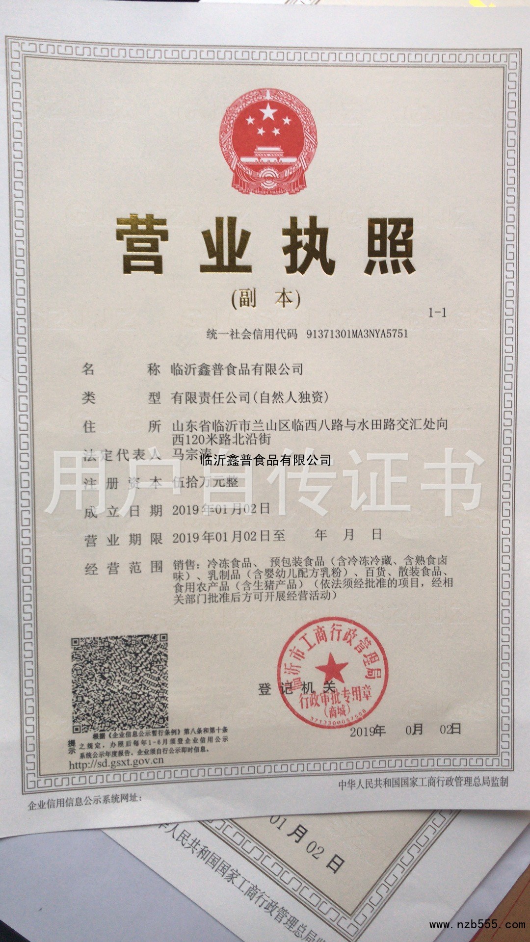 | 發(fā)證機(jī)構(gòu): | 臨沂市工商行政管理局 | 發(fā)證時(shí)間 : | 2019-01-02 |