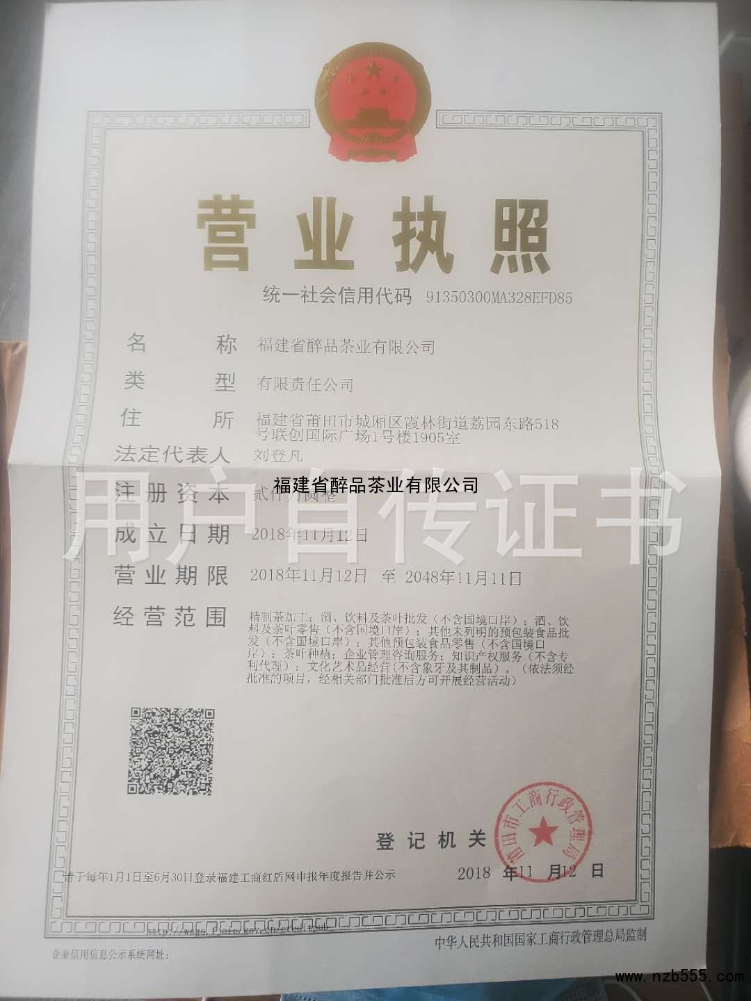 | 發(fā)證機(jī)構(gòu): | 莆田市工商行政管理局 | 發(fā)證時(shí)間 : | 2018-11-12 |