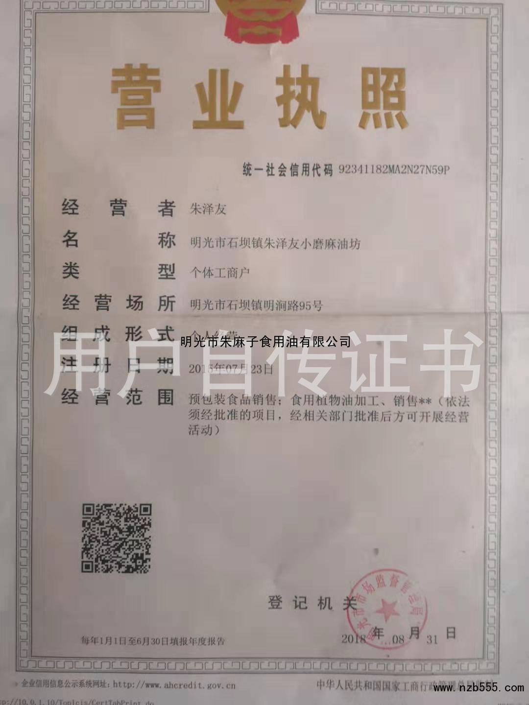 | 發(fā)證機(jī)構(gòu): | 明光市市場(chǎng)監(jiān)督管理局 | 發(fā)證時(shí)間 : | 2018-08-31 |
