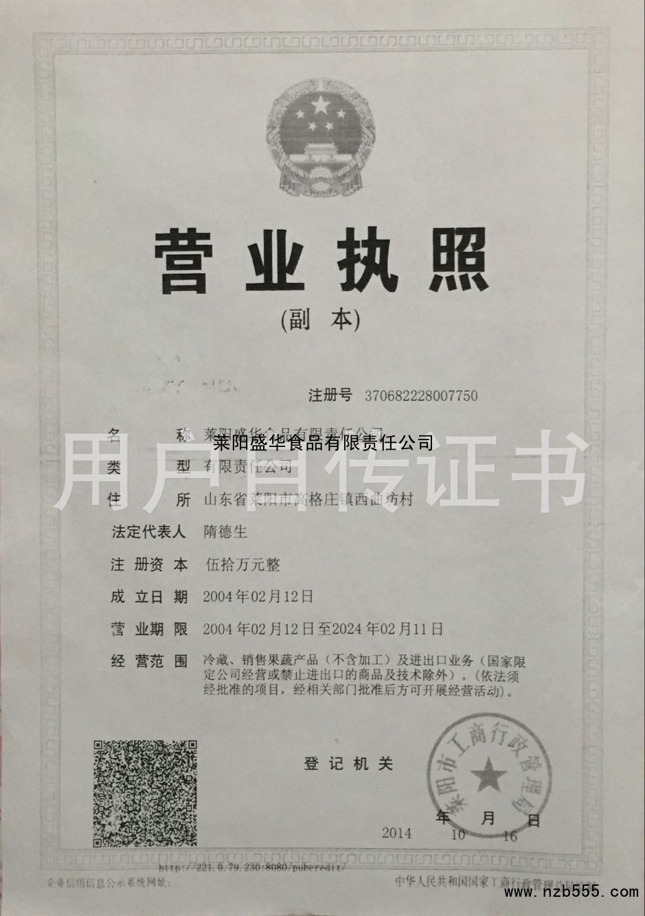 榮譽(yù)資質(zhì) 萊陽(yáng)盛華食品有限責(zé)任公司
