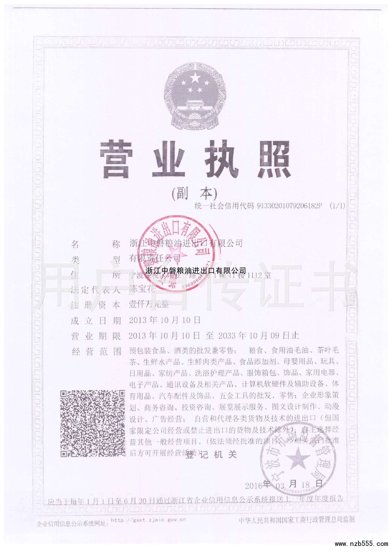 | 發(fā)證機(jī)構(gòu): | 寧波市市場監(jiān)督管理局 | 發(fā)證時(shí)間 : | 2016-03-18 |