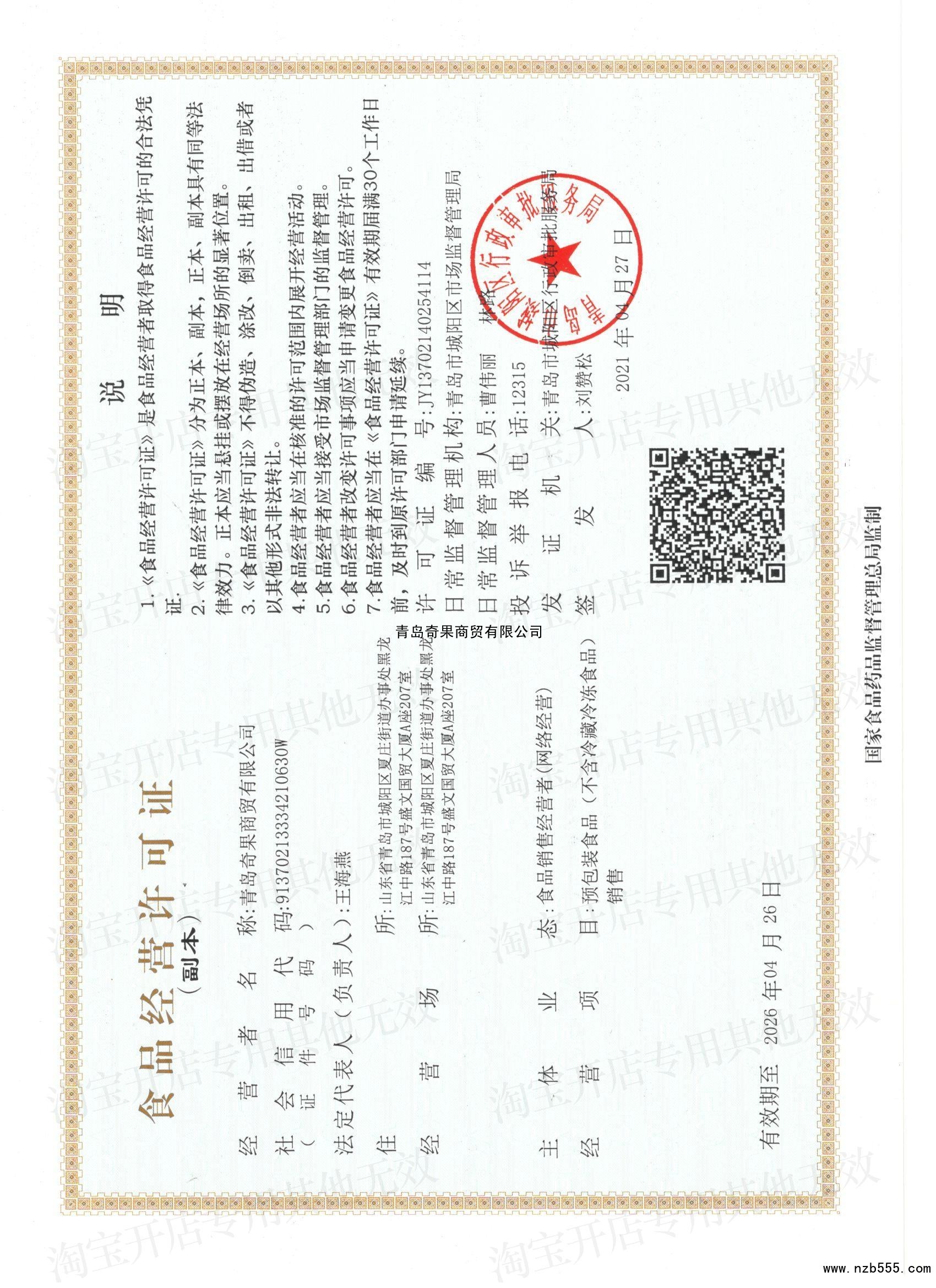 榮譽(yù)資質(zhì) 青島奇果商貿(mào)有限公司
