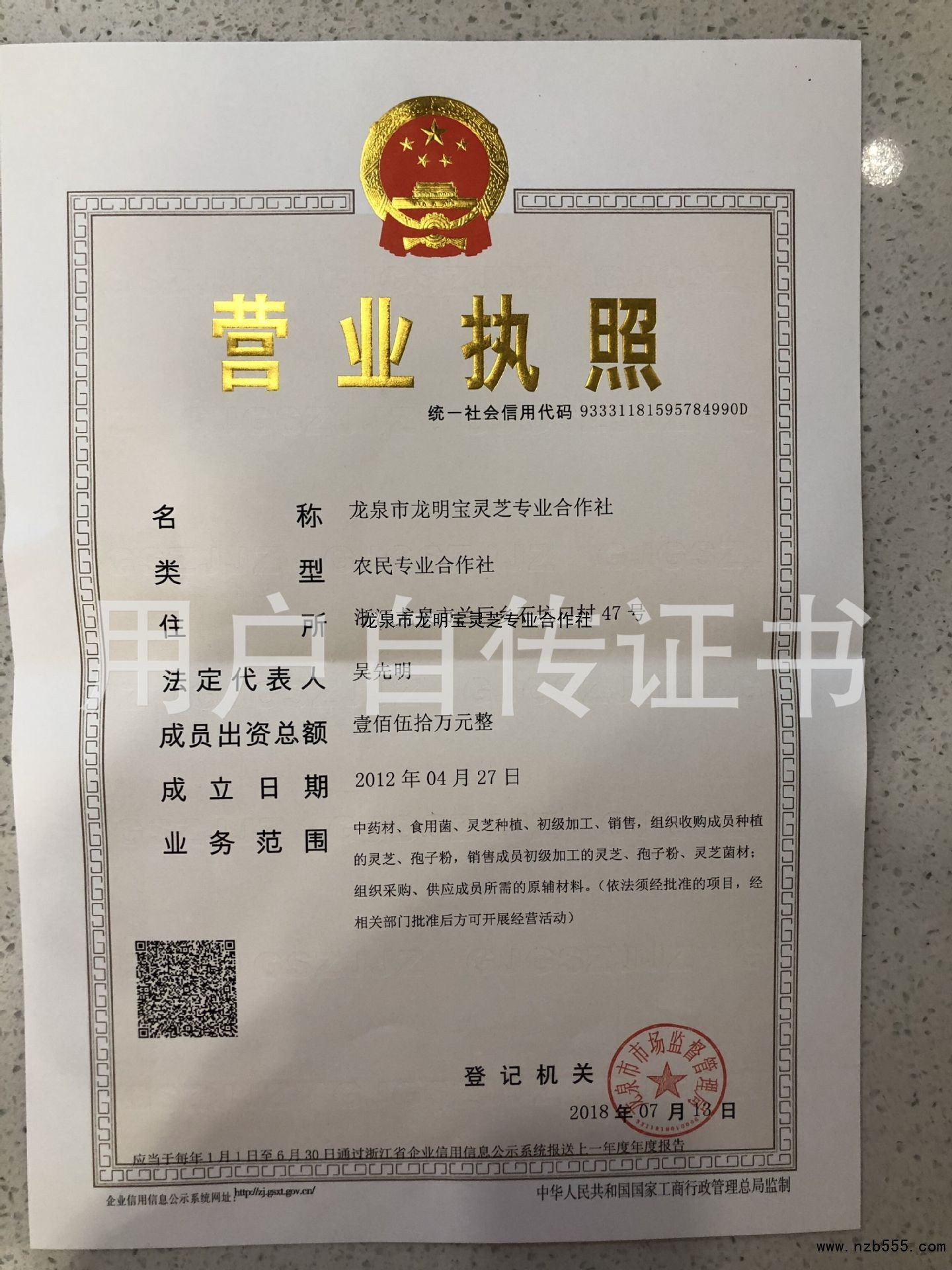 榮譽(yù)資質(zhì) 龍泉市龍明寶靈芝專業(yè)合作社