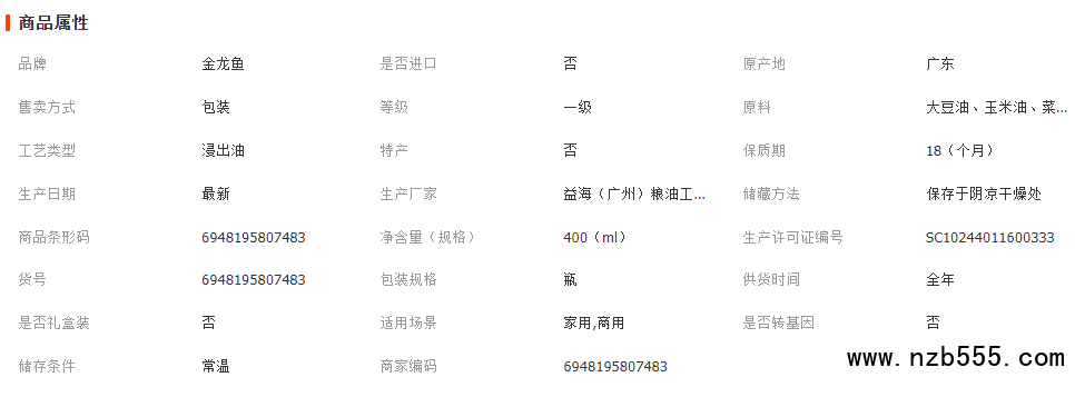 金龍魚黃金比例食用植物非轉調和油400ML/瓶裝批發食用油活動禮品