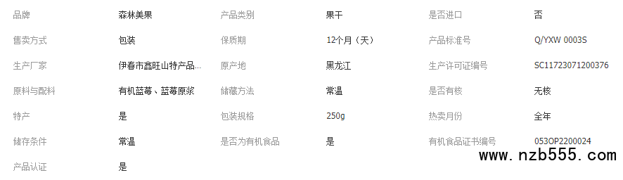 九鑫山珍森林美果有機藍莓果干250g無油減糖不臟手有嚼勁不齁膩