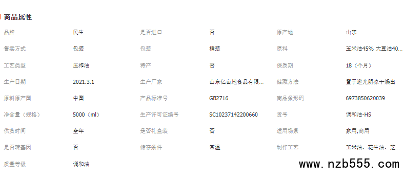 民生食用油5升花生濃香家用油5L植物油一件代發食用植物調和油