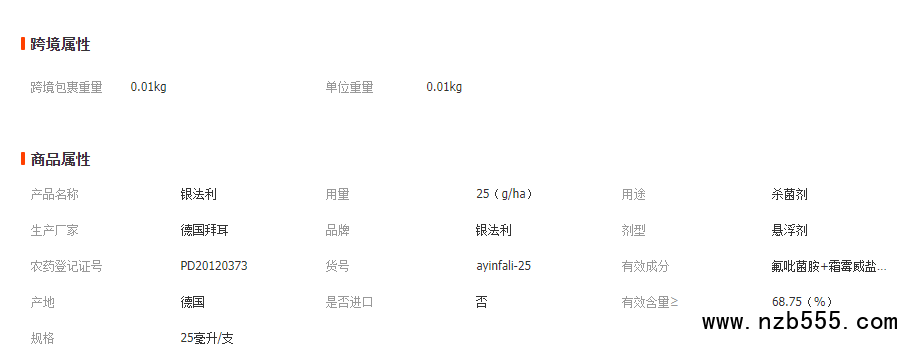 德國拜耳銀法利氟吡菌胺+霜霉威鹽酸鹽 霜霉疫病農藥殺菌劑25毫升
