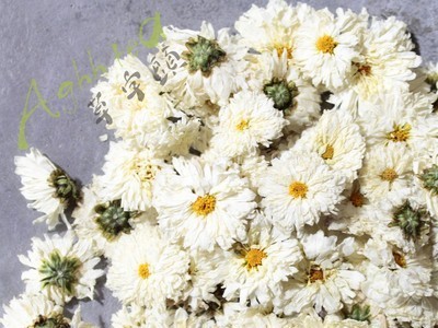 此款產品為黃山七月菊,8月份后季采摘的菊花。中間黃心,味苦,開水沖泡可以適量放些冰糖調味。