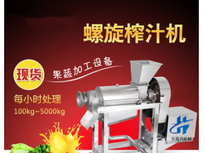 螺旋主軸的轉動方向從進料斗向渣槽方向看去,為順針時方向。原料加入進料斗中,在螺旋的推進下受壓,其壓榨的汁液通過過濾網流入底部的盛汁器,而廢料則通過螺旋及調壓頭的錐形部分之間形成的空隙排出,調壓頭沿軸向的移動可調整空隙的大小。用手順時針(從設備的出渣槽向進料斗看)轉運手輪軸承座時,調壓頭向左,空隙即縮小,反之則空隙變大。改變空隙的大小,即調整出渣的阻力,即可改變出汁率,但如果空隙過小,在強力擠壓下,部分渣的顆粒會和汁一起通過過濾網被擠出,盡管出汁增加,但汁的質量相對下降,空隙的大小應視用戶具體工藝要求而定。