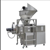 擠壓機(jī)主要用于物料成型。設(shè)備有動(dòng)力部分、擠出部分、喂料部分、成型部分等。設(shè)備帶有冷卻裝置,可調(diào)節(jié)內(nèi)部溫度。控制有傳統(tǒng)按鈕式和PLC觸屏式兩種可選。設(shè)備功率為17kw,出料速度通過(guò)變頻調(diào)節(jié),可生產(chǎn)顆粒,條狀,片狀流體等產(chǎn)品,產(chǎn)量在500Kg/h左右(物料特性會(huì)有差別)。