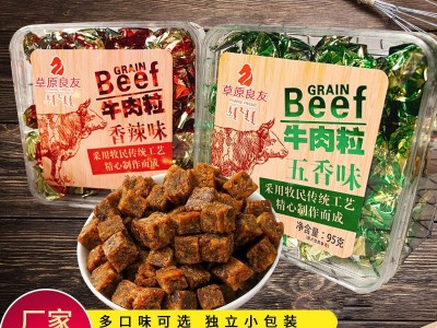 內蒙古特產牛肉粒五香香辣味牛肉糖休閑零食小吃95g獨立包裝盒裝