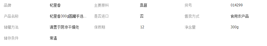 杞里香枸杞罐裝250g中