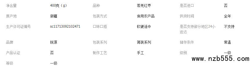 產(chǎn)品名稱;新疆若羌紅棗