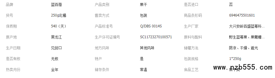 配料 :有機野生藍莓果、果葡糖漿、橄欖油
