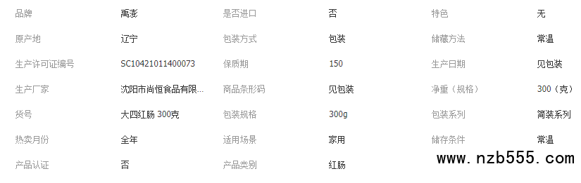 禹澎哈爾濱大四紅腸300g超市食品批發果木炭烤東北香腸下酒菜熟食