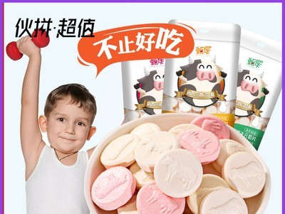 甄伴牛奶片兒童奶貝酸奶乳酸菌益生元草莓原味干吃零食奶酪片糖果
